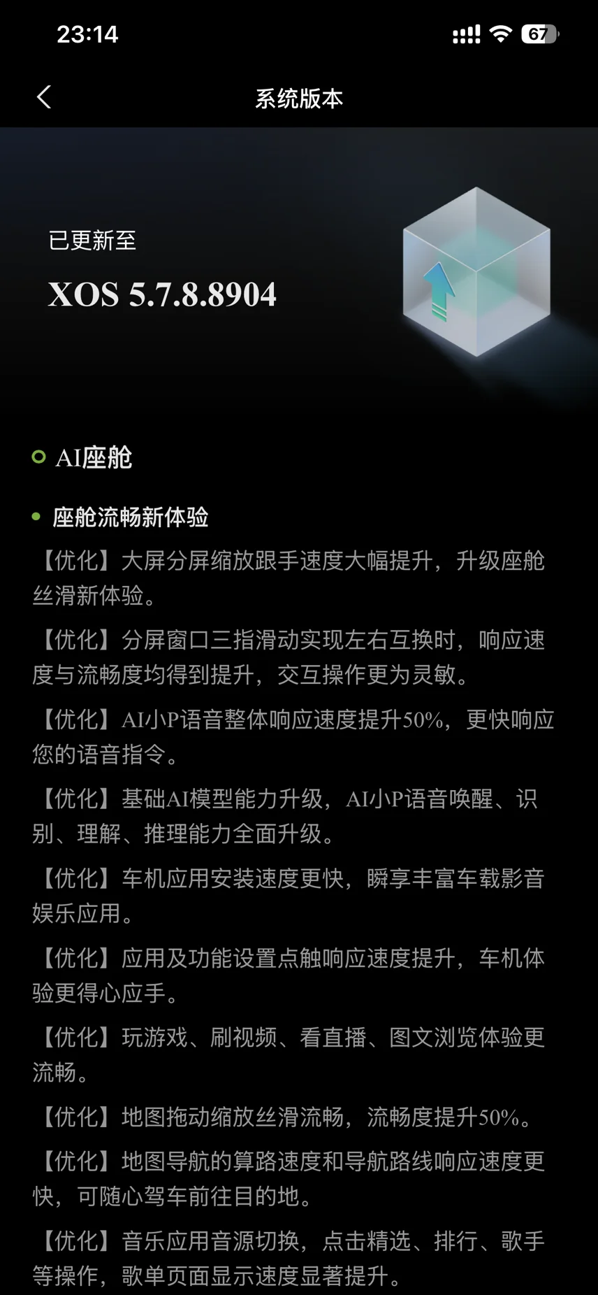 老P7芯片升级后,系统丝滑,流畅,小P对话更加流畅,系统也自动升级到最新版,感谢小鹏还记得老用户,深圳的福保店售后也非常到位,赞!升级太值了~
