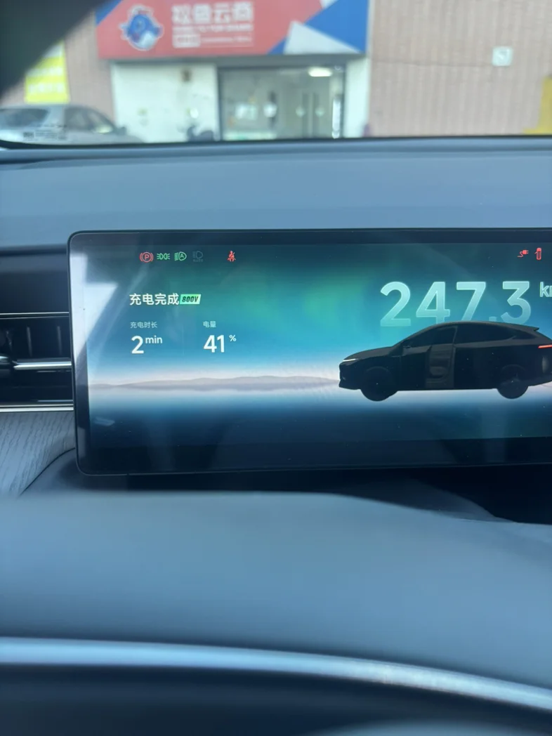 充电新体验,周末到江门吃粥底火锅,到广州接朋友可是续航还差点,刚好急着上厕所,于是导航到附近小鹏充电站进去充电枪一插(打开了快充枪按压即充电口打开和即插即冲,不得不说这两个功能在用快充是真的方便,减少了很多步骤)然后到卫生间上个厕所2分钟补能8度电大概八十公里,完美到中山吃火锅,还不影响上厕所,5C超充真的太方便了。