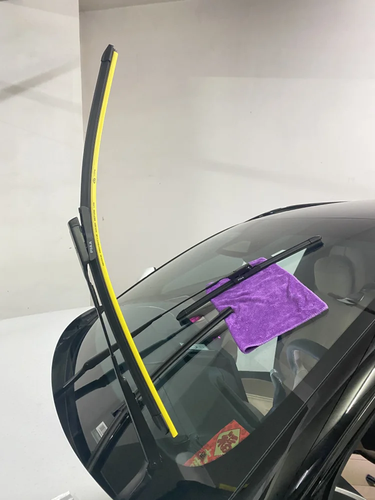 由于对G9原车雨刮不太满意,今天新购买一直信赖的PIAA雨刮到了,挺贵的,本想要日本原产地的,结果因小鹏的卡扣特殊设计,只能选印尼产适合安装的,主驾的24寸也换成了26寸,可以刮大一点面积,副驾还是原来的18寸,安装也比较简单,先用一片自带的酒精布把整个玻璃擦干净,再在车上使用点击前雨刮维修模式,放一条干毛巾在对应的地方免提起雨刮器时不小心打到玻璃,把原雨刮器卡扣中的按点按下去就可提出来,再安装上新的,另一边也同样的操作,安装完后点击恢复前雨刮维修模式,用PIAA与别的产品不一样的操作是最后一步,坐到车上关上所有门,打开雨刮器干刮3-5分钟停止,玻璃上会出现两条黑灰线条,用新的酒精布重擦干净就可去除完成全部了。然后就可以喷雨刮液,感受一下PIAA的带来的静音与洁净。