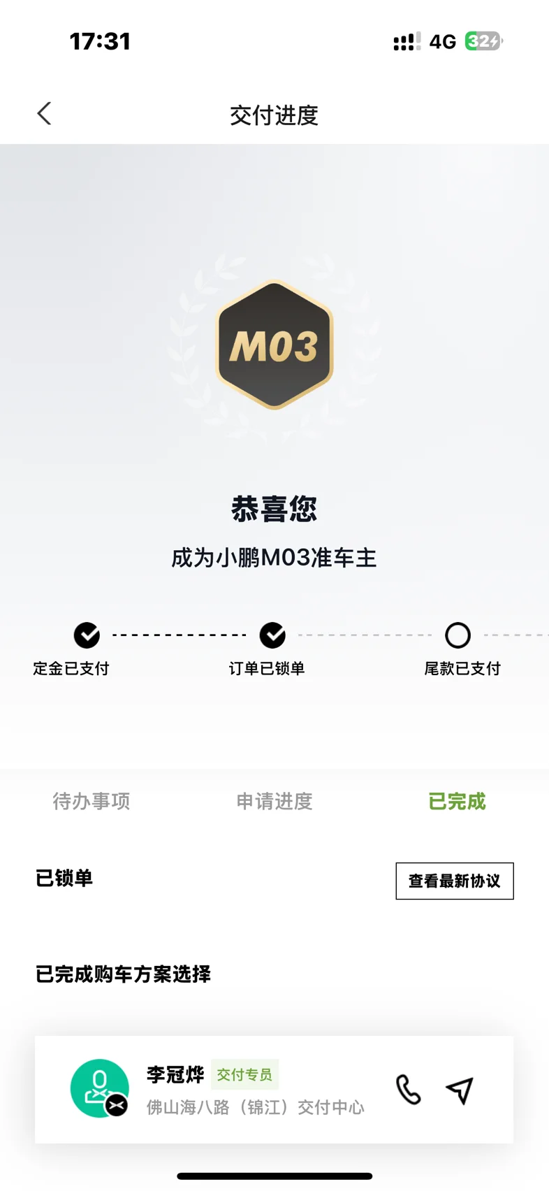 #我的提车作业# 00后牛马终于拥有了属于自己的第一台车~感谢爸妈的爱让我没有负担,我会好好珍惜滴💜看了好多款车最终还是选择了小鹏M03·简约 高科技,不愧是年轻女生的首选。从外观到内饰都狠狠抓住了我的心,车机功能也很丰富,未来的路和小鹏一起平平安安的走下去吧💟