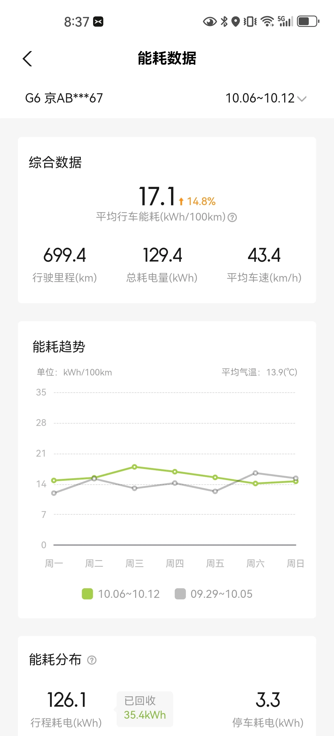 #我的10月用车总结# @鹏友俱乐部 十月第一周因为假期高速占比较多,平均能耗大概17,充一次电大概能跑470公里。后面三周只有日常的城区行驶,目前的温度基本不需要开空调,能耗在13-14左右,折算80度电大概能跑570公里到615公里,WLTP续航里程还是挺实在的。除了能耗,还有一点非常满意的就是小鹏的银色车漆,非常耐脏,尤其是和深色车对比,基本能做到两周洗一次车。就算车身上有层浮灰,不仔细看真的感觉不到脏,图六是在地下车库洗完以后,依然很帅气。