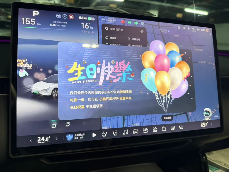 今天是我的生日,在上班的路上没有注意到中控屏的生日提醒,下班回来看到,就随意点了一下,真的惊艳到我了,心里暖暖的!还送了5个G的流量!