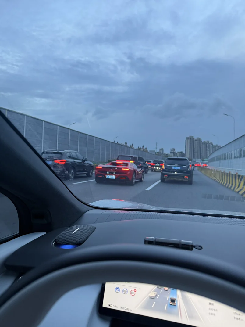 一开始城区智能驾驶很不适应,总感觉他刹车太慢了总觉得要和前车撞上了距离特别近,所以10月之前开车几乎不用智驾觉得它好吓人,和人开车习惯不匹配,人开车是看见前面车里慢慢放缓速度也会跟着慢慢放缓速度滑行过去,智能驾驶不是,它是快跟前车距离5m的时候才开始放缓速度,人的反应是这会儿才放缓速度真的很害怕撞上去,但实际上不会的,所以国庆这次出行也是一个很好喝智能驾驶磨合的好机会,还发现他喜欢走左车道,即使不需要变道。