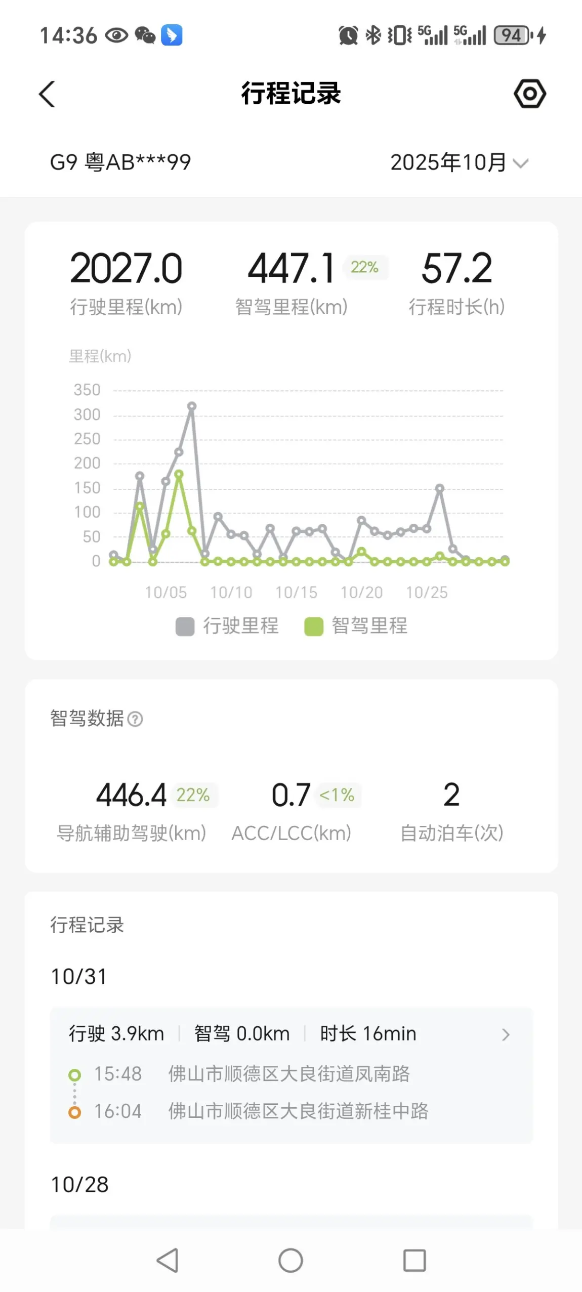 #我的10月用车总结# 十月快乐,快乐十月十月确实是一个快乐的月份,除了秋高气爽的天气,还有那心心念念的国庆长假。今年的十月碰巧中秋,所以带着妻子和子女回了趟老家,看看年迈的父母,见见亲人,了却思乡之苦。 当然,国庆长假,不可不做的是外出徒步爬山,上上下下爬坡的海拔超过了800米,创了新的记录,也累的够呛,同行的小朋友说是靠着坚强的意志走完全程,所以说爬山是一项非常好的运动,既锻炼的体能,锻炼了意志,还收获了山顶美丽的风景。感谢我的G9,一路陪伴,十月行驶里程超过了2000公里。@鹏友俱乐部