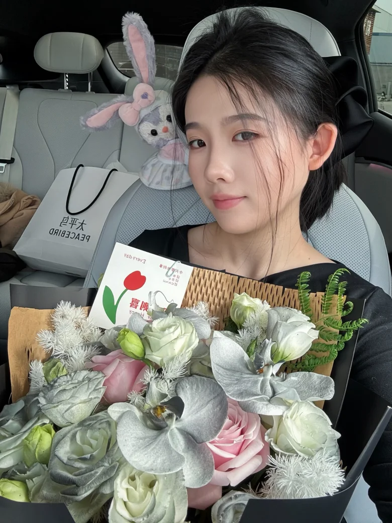 提前就定好了 配我们小车车的酷酷黑色花束 还有交车区的鲜花和大蝴蝶结 每一个瞬间都值得纪念!从此 我们的故事开启了新的里程🎉