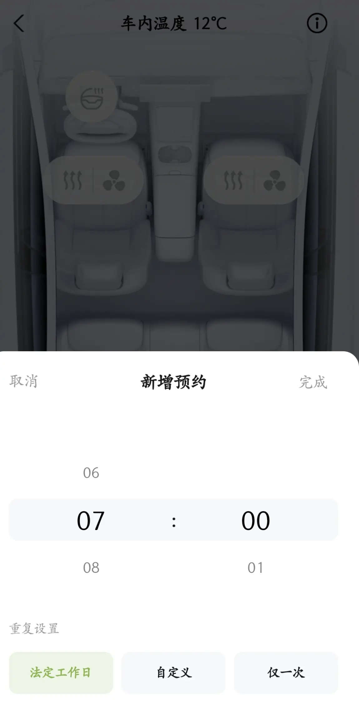 1.对于没有室内停车场或者家用充电桩的鹏友们来说,就享受不了电池预热,所以我一般在上班前10分钟打开极速升温,并且可以预订时间,见图1.2哦,这样,就算最近下雨或者冬天下雪,刚进入车里也不是很冷了。