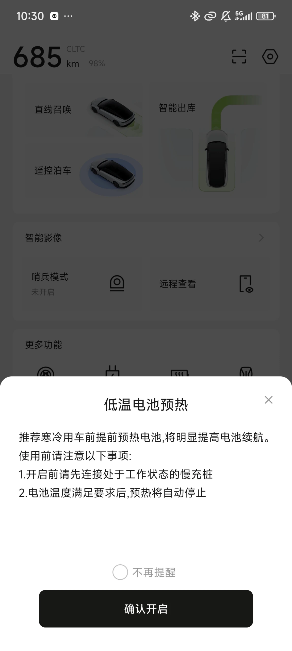 - 电池预热:稳续航保性能:低温会降低电池活性,提前通过小鹏APP或车机开启电池预热(连慢充桩时更高效),出发前1-30分钟启动,可避免续航衰减20%-30%,还能延长电池寿命。