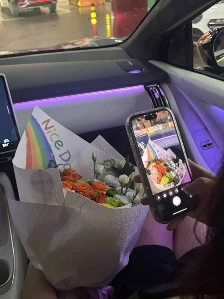 哇塞 小鹏p7➕一周年啦 依旧没有过这个新鲜感 还是很爱我的车 女生开紫色真的很酷了 白色内饰拍出来好高级