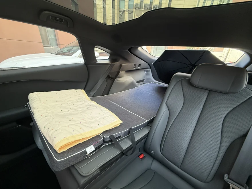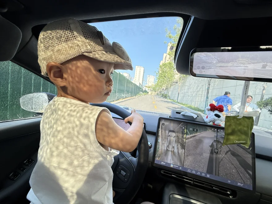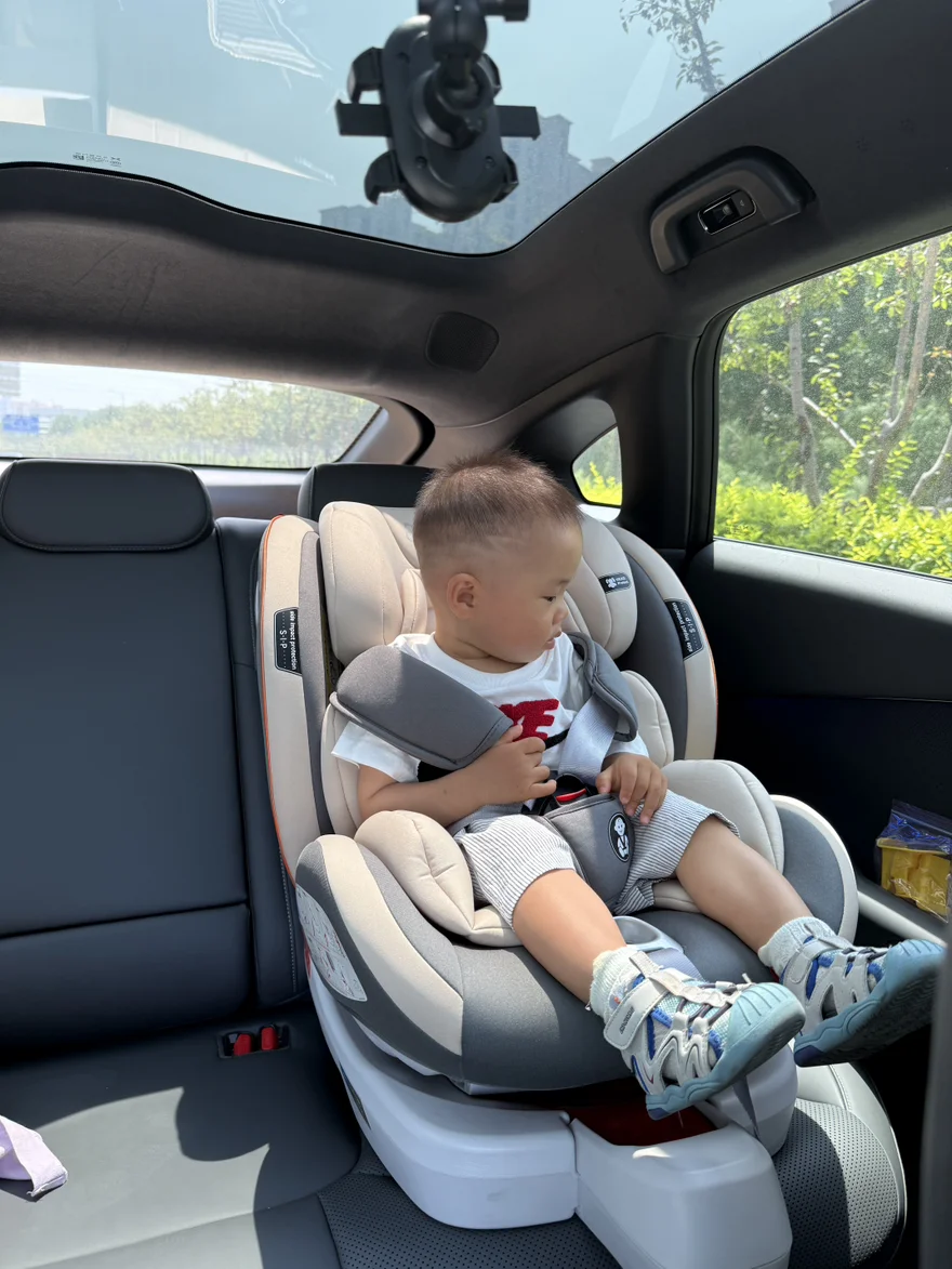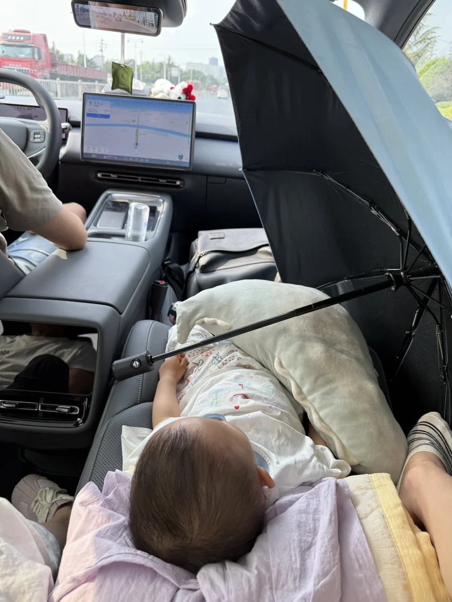 #车主花式祝福小鹏P7+周年庆# 我的带娃好帮手和我的午休搭子~座椅太舒适、空间太宽敞咯~后面装了遮阳帘以后就不用再打伞了哈哈哈哈哈,第一张是洗车中(安全🅿️状态),有了小鹏带娃出行可太方便了,宝宝也很喜欢坐车