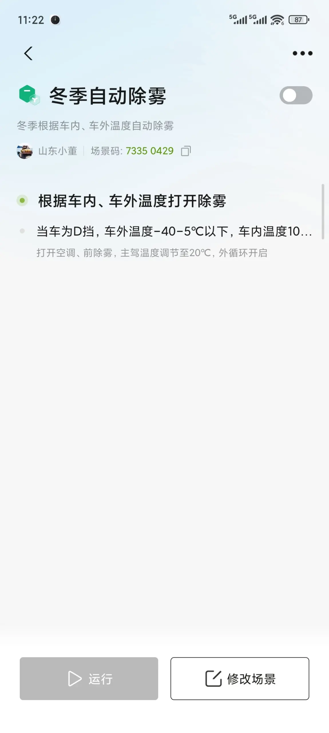 智慧场景,可以理解为为您爱车设定的“自动执行指令”。通过简单的场景码设置,车辆就能在满足特定条件时,自动完成一系列复杂操作,彻底告别手动繁琐。对于冬季用车,以下两个场景堪称“必装神器”。