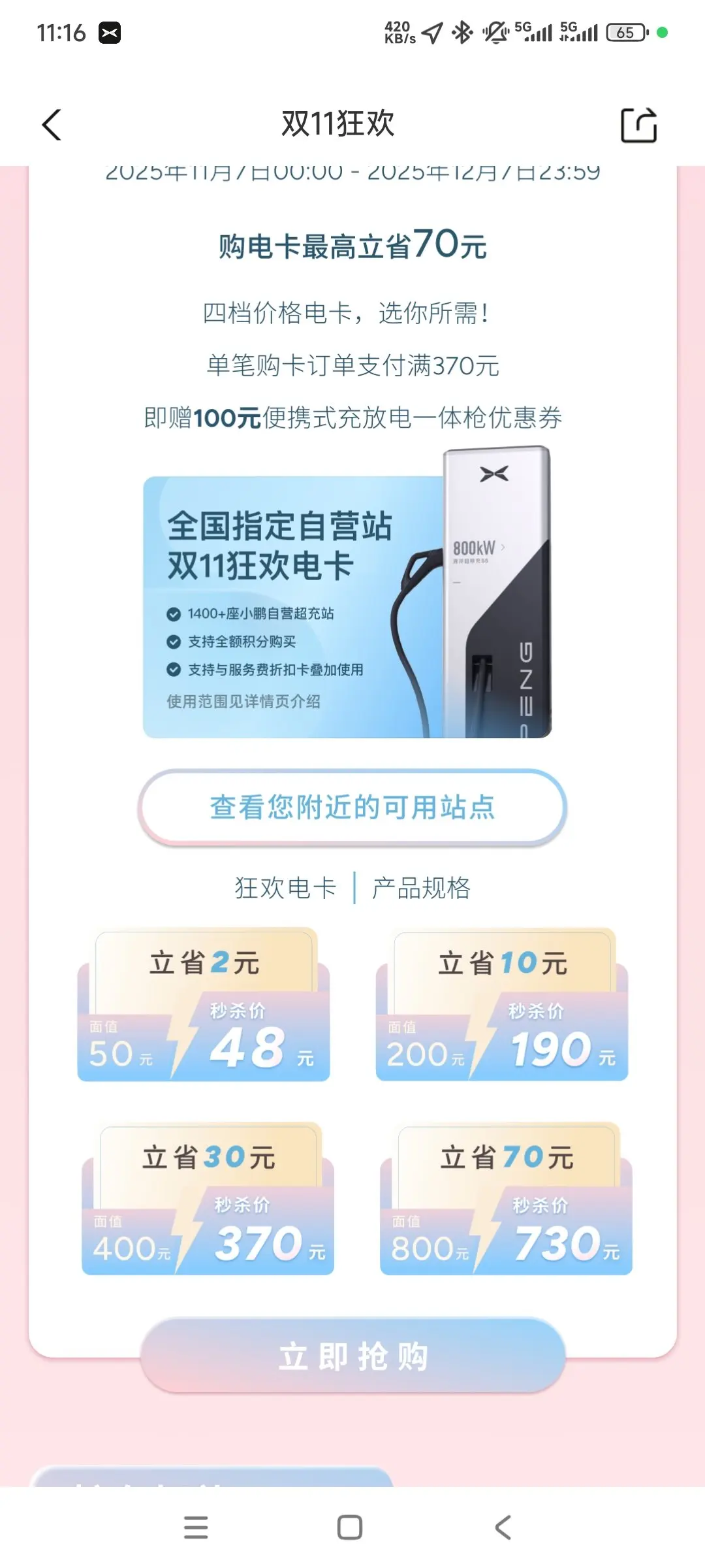 首先锁定商城专属福利——800减70电卡优惠券!打开小鹏汽车APP商城,找准限时上架的电卡福利,下单即享实打实的折扣,相当于直接给充电费打8.9折,充得越多省得越多,长期用车性价比拉满。千万别等优惠券下架再后悔,趁活动囤一波,冬季充电底气十足。