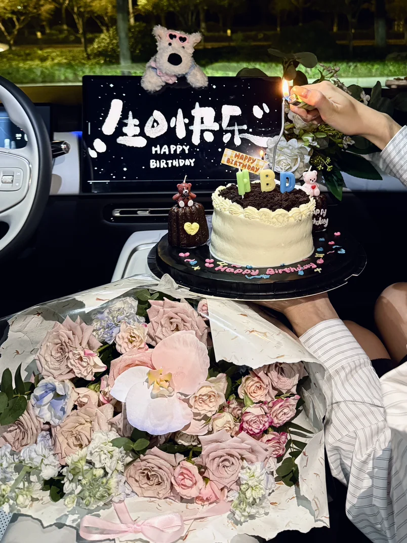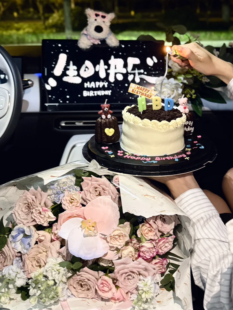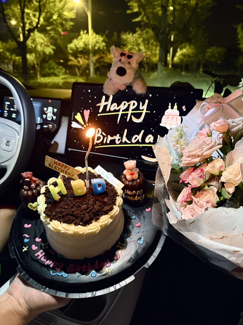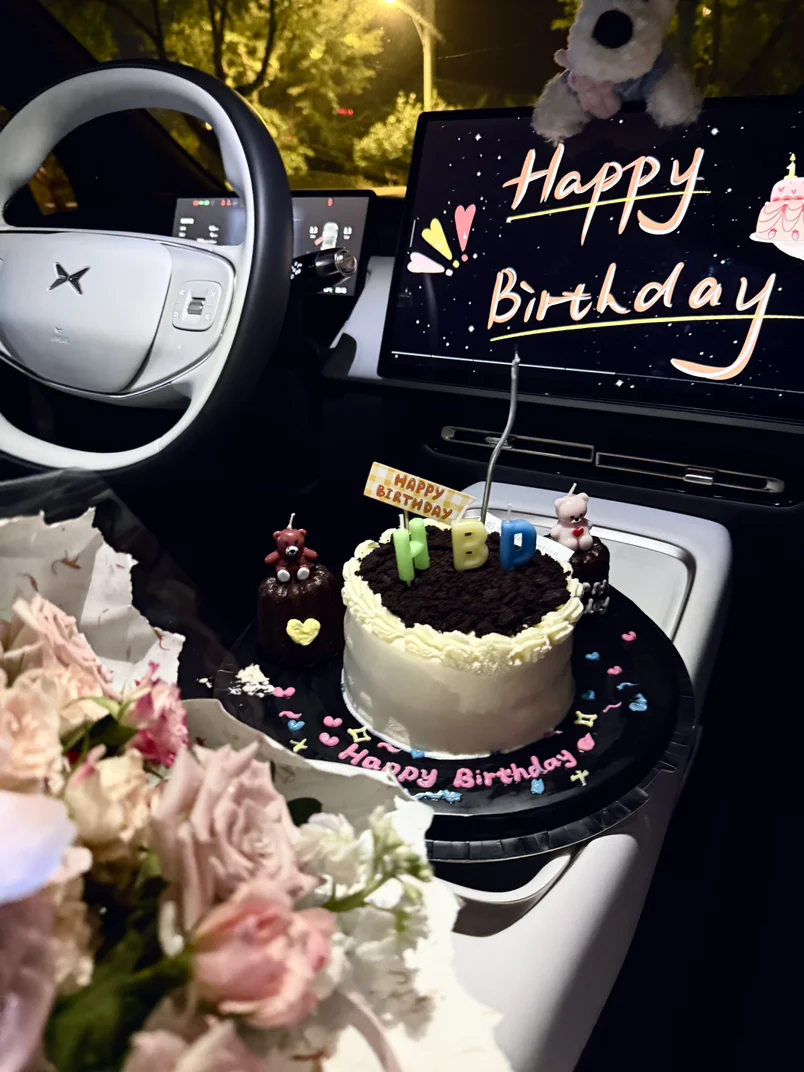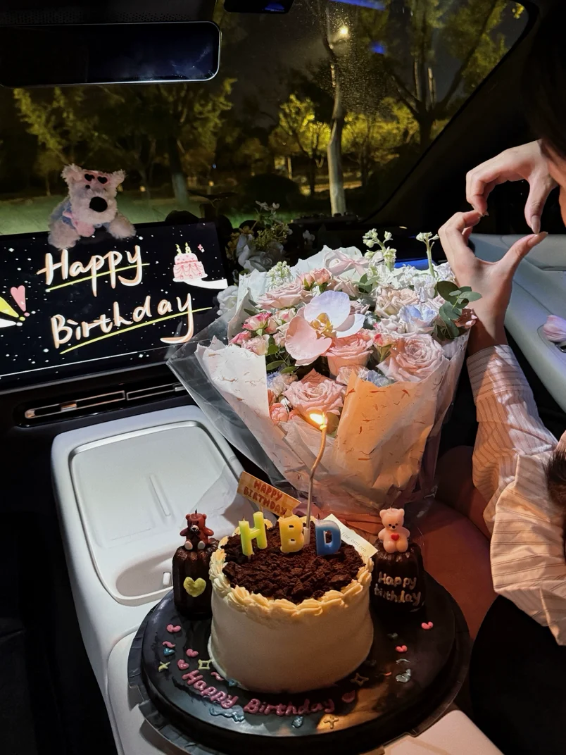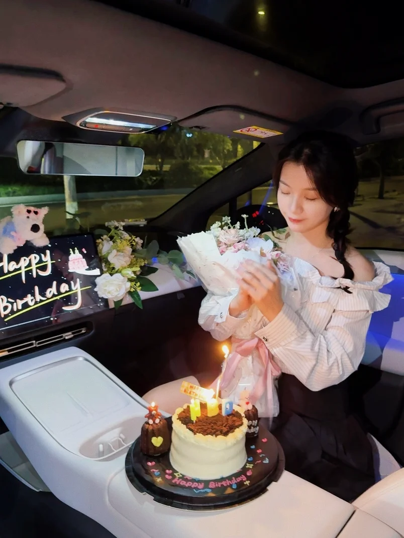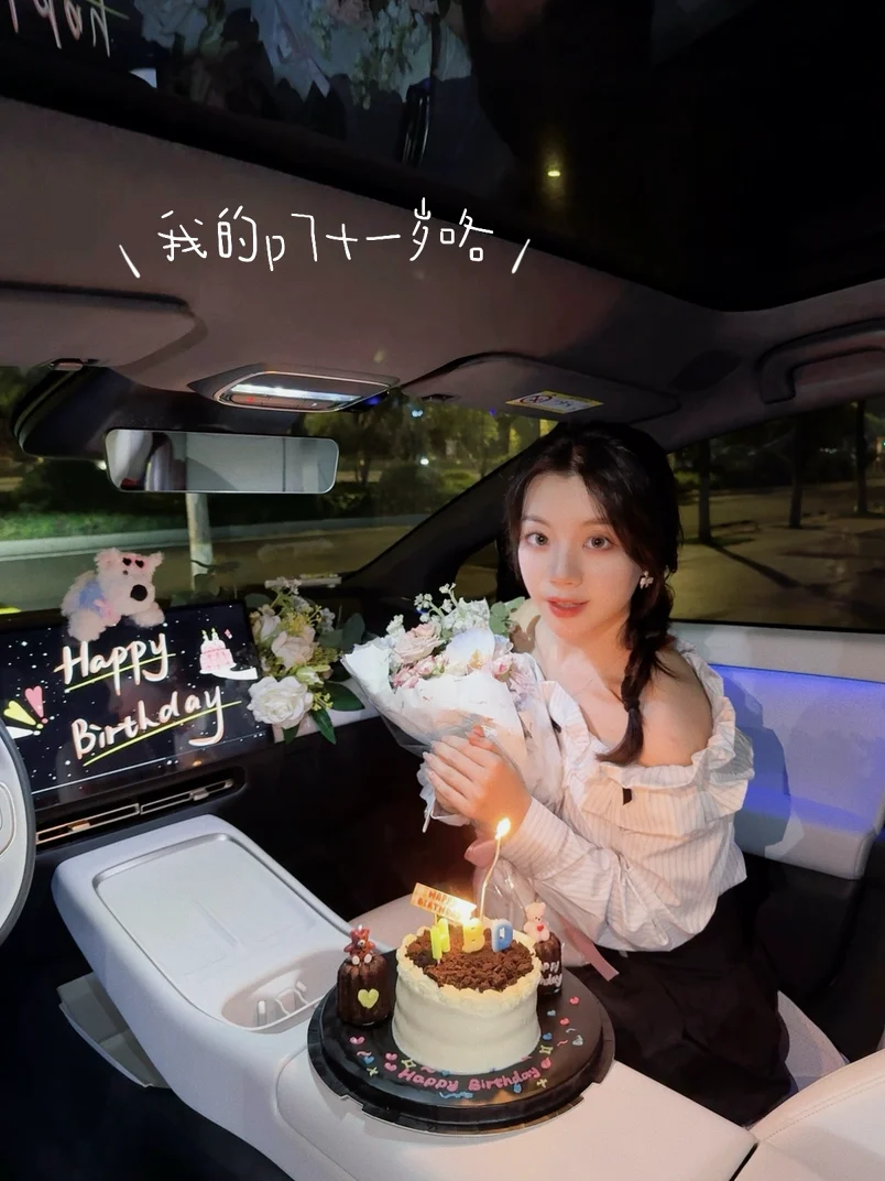 把屏幕调成“生日快乐”字幕,打开氛围灯,在车内拍照真的好好看,简简单单就已经很出片。虽然是我的车过生日,但是这个蜡烛就只有我来帮忙吹啦🤗