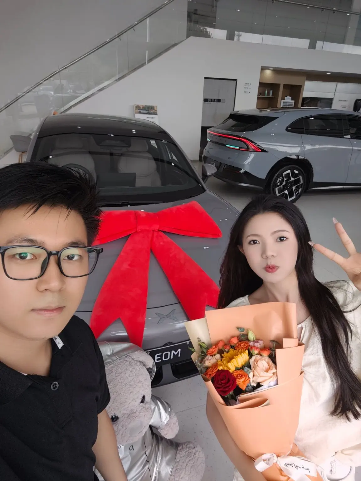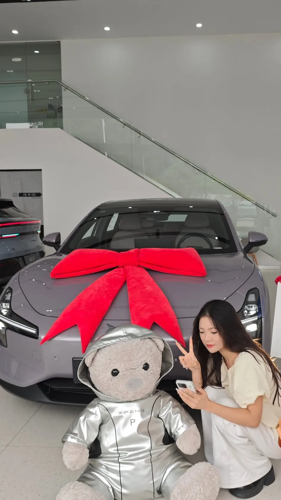 💐夸爆小鹏的交付体验!交付专员小姐姐全程笑眯眯的,耐心讲解所有功能。最惊喜的是仪式感拉满——居然准备了香槟玫瑰和毛茸茸的太空熊公仔!还贴心地摆好了蝴蝶结🎀(疯狂拍照100张!)