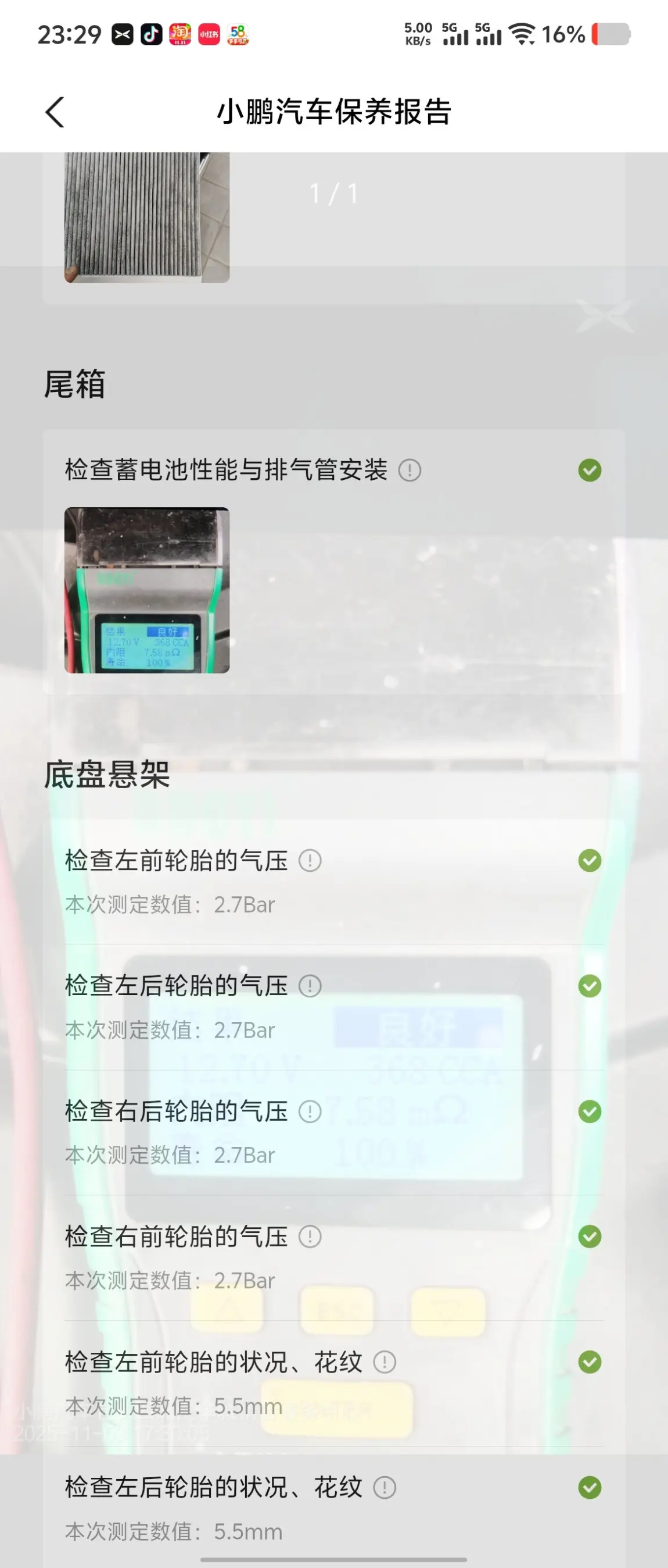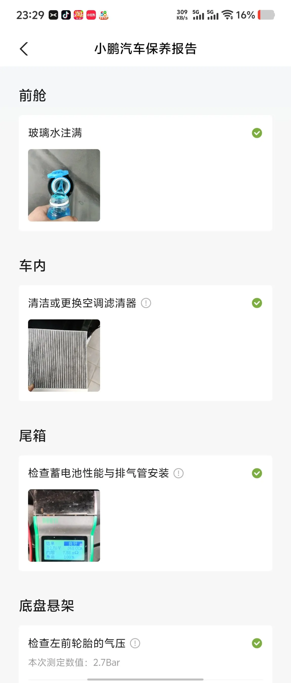 冬天了,内蒙古的冬天到了。去做了保养,我是和小蓝灯一起去换的。冬天北方一定要换能零下30度的玻璃水。大家一定要把夏季的用干净,一定一定。然后还有胎压打高一点不好很快就冻没有了。我觉得2.7-2.8正好,如果太低太滑了,雪地胎我没用换的习惯,有条件的同学换一下吧。经过了上一个冬天,我总结每天上车前十分钟热车上车温度正好不冷不热。不过冬季的电耗会增加,续航会下降百分之十到二十。小电池查过了很健康,动力电池查过了百分之九十九的健康度。售后管家小姐姐服务热情我们聊天很开心,已经成为朋友了,每次去还请我吃饭。重点表扬一下!!!赞一下小鹏汽车包头西北汽车城销售服务中心的售后小姐姐小哥哥们,说话幽默服务热情技术专业。@鹏友俱乐部