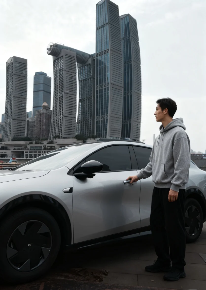 抵达后,新月银车身映着江光与暖阳,和来福士建筑同框,随手拍都是大片📸。喊“小P”锁车关窗,响应飞快,智能又便捷。沿江边漫步,吹着秋风看江景,回头望见小鹏G7,满是惬意。