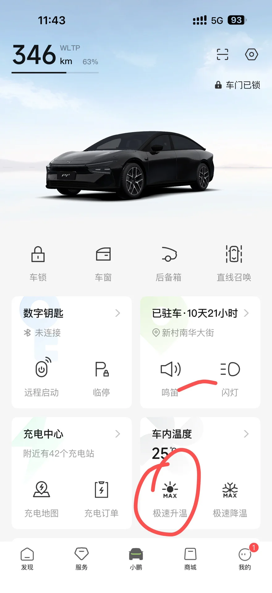 我的是小鹏p7+车型,一到冬天没有地下车库的话难免启动时冷启动掉电,所以我在手机 app启动前打开一键升温 提前五分钟打开就好 到车里暖和多了
