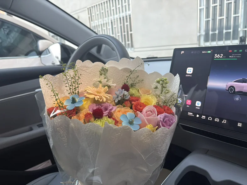 最后就是超有仪式感的交车仪式啦!我的销售哥专门准备了提车的鲜花,还有交付中心送的小熊!天气很热:交付主管还帮我和爱车拍了好多美美的照片