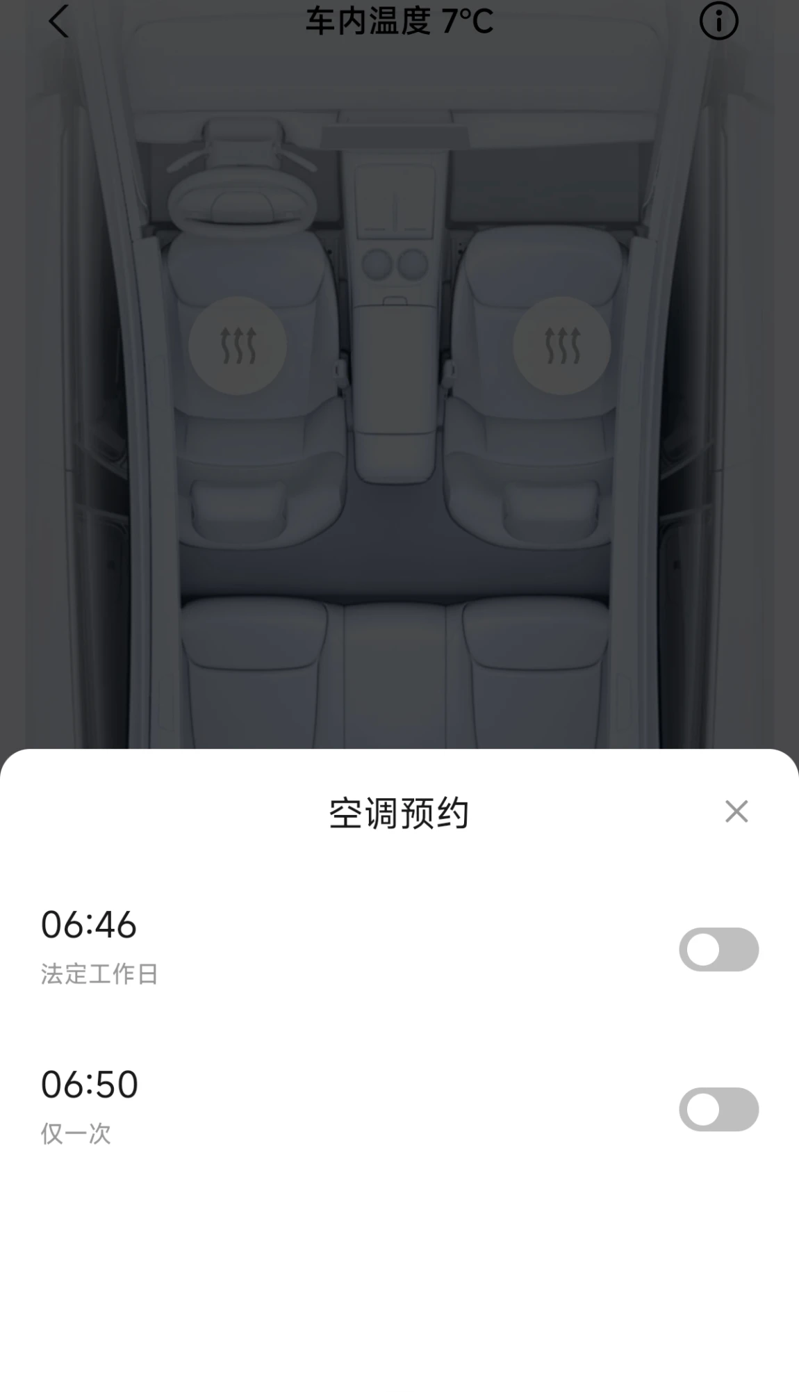 空调设置为23℃内循环+座椅加热,节能又保暖。