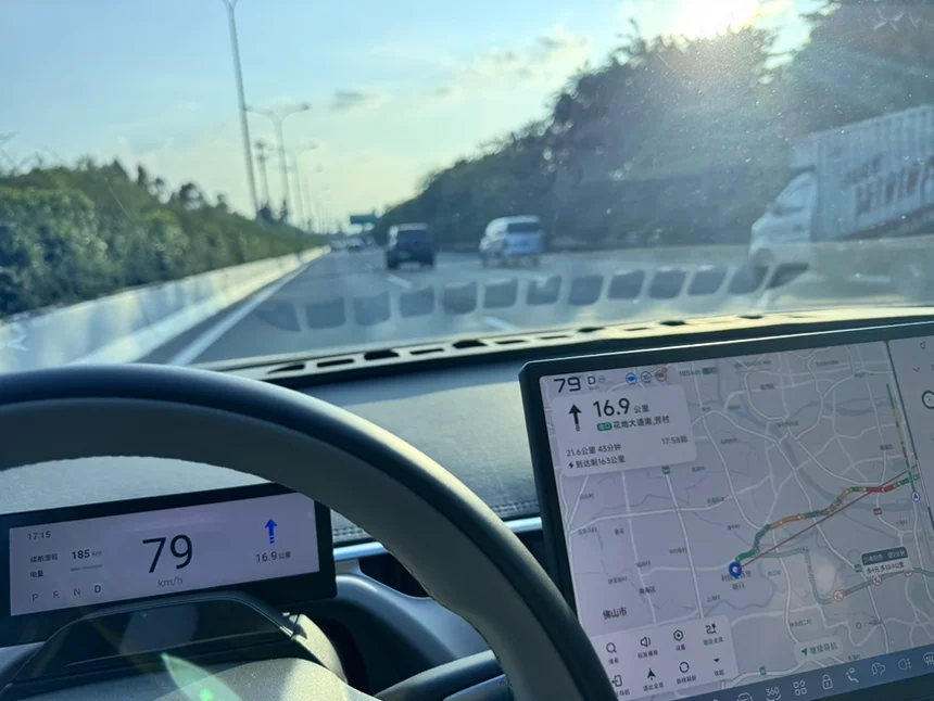 从佛山南海出发走广河高速,全程大概1.5小时。出发前在小区充电桩补到90%电,高速上开了智能辅助驾驶,跟车、变道都很稳,单手扶方向盘轻松不少~