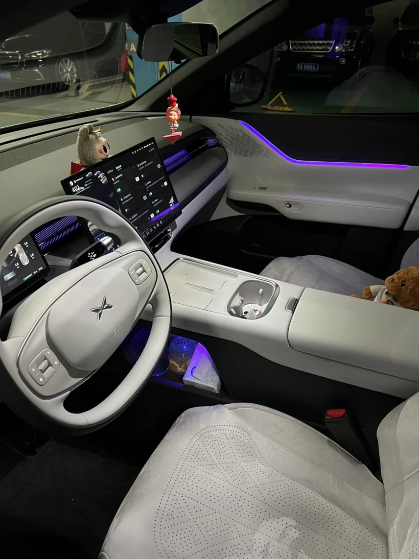 G6提车半个月了分享一下用车感受1.动力方面后驱,日常代步并线超车,动力足够用了2.刹车个人感觉前半段刹车适中,后半段刹停的时候有点偏软,需要适应一下刹车的线性变化3.乘坐空间没啥问题,没有前备箱,后备箱下沉空间也算中规中矩,略有遗憾4.底盘滤震很舒服,过减速带和井盖没有很硬棒棒的感觉5.电耗大概12个多一些点6.内饰个人感觉挺素雅,晚上开车氛围灯挺漂亮😻#我的提车作业#