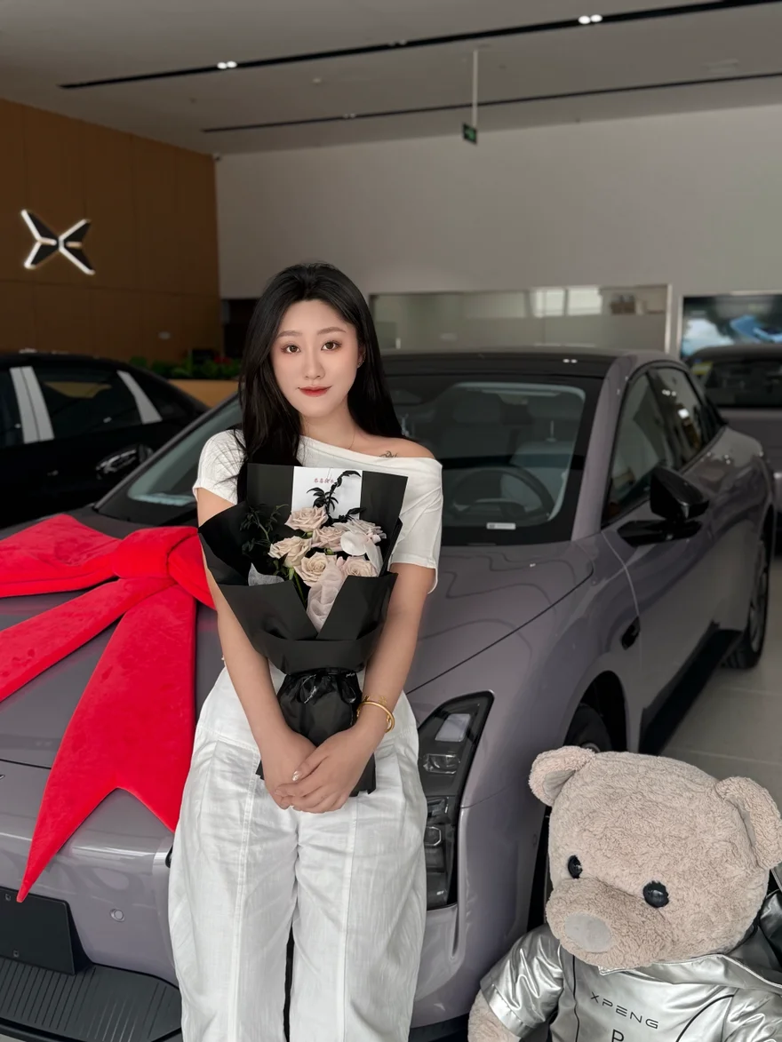 #我的提车作业# 10.15锁单 10.27提车• 初见惊艳:交付中心C位就是我的“蓝朋友”,系着大蝴蝶结+鲜花+定制小熊,仪式感直接拉满;• 手续高效:交付专员一对一服务,付尾款、签文件、激活车机、绑定APP,整套流程不到2小时,还贴心递饮料;因为车车是紫色💜,所以穿搭就选的白色做搭配,真的很出片,很好看~