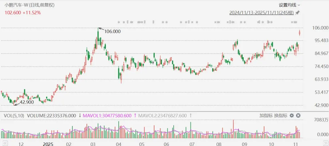 摩根士丹利、德银、花旗、中金、中信证券等多家头部机构纷纷发报告强推小鹏汽车。其中,摩根士丹利对小鹏汽车评级为“增持”,目标价设为30美元/股;德银在报告中称“小鹏汽车迈向具身智能全球领导者地位一大步”,并给出“买入评级”;中金公司则在报告中给出小鹏汽车“维持跑赢行业”评级,同时维持港股、美股目标108港元/股、28美元/股。