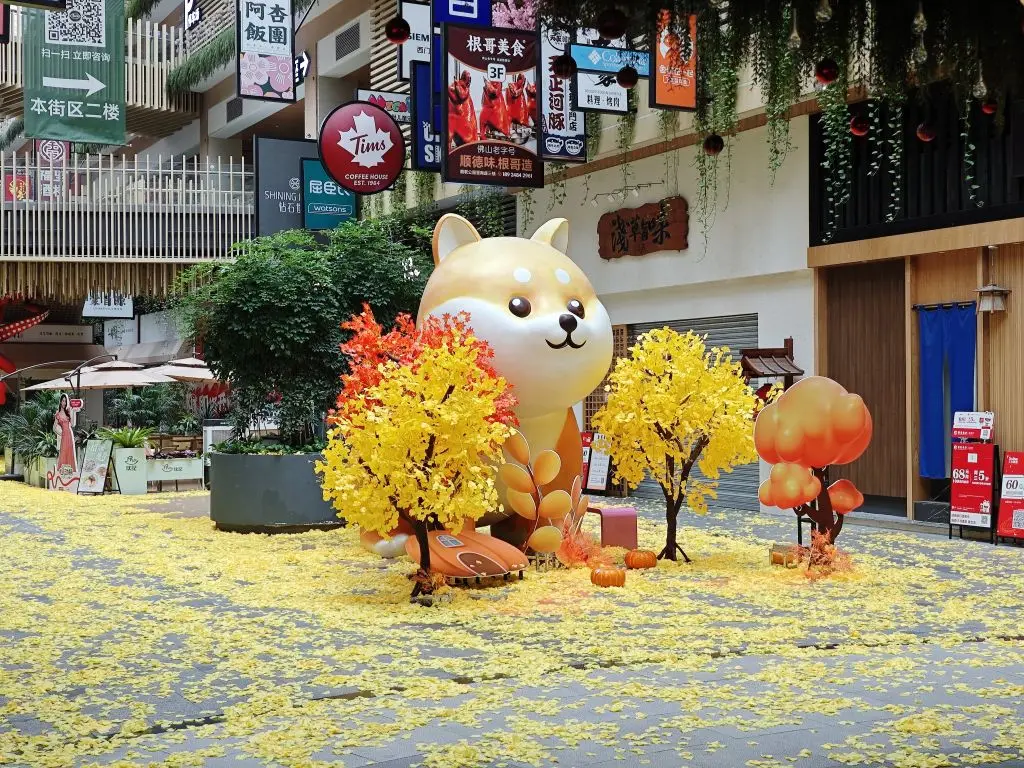 在商场偶遇巨型柴犬🍂秋日限定治愈现场! 一进商场就被这个圆滚滚的柴犬装置戳中啦🥺软fufu的笑脸+暖黄色调,直接把秋日氛围拉满✨ 地面铺满了“银杏叶”🍂周围还有小南瓜、渐变枫树🌳仿佛闯进了柴犬的秋日小窝~随便拍都巨出片📸
