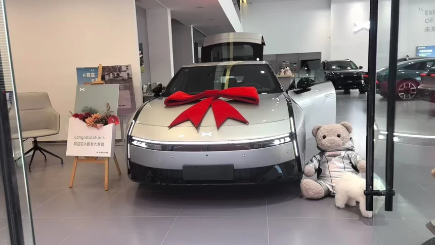 带车副驾提车啦嘿嘿👻帅帅的大玩具 真的好帅哦 嘿嘿嘿!绿色和银色都好好看 纠结了好久 最后选的是银外紫内,实车太酷辣一眼看上电动尾翼!好看!得买!带着小虎子出去玩啦,寒假自驾游走起!#小鹏汽车# #小鹏P7#