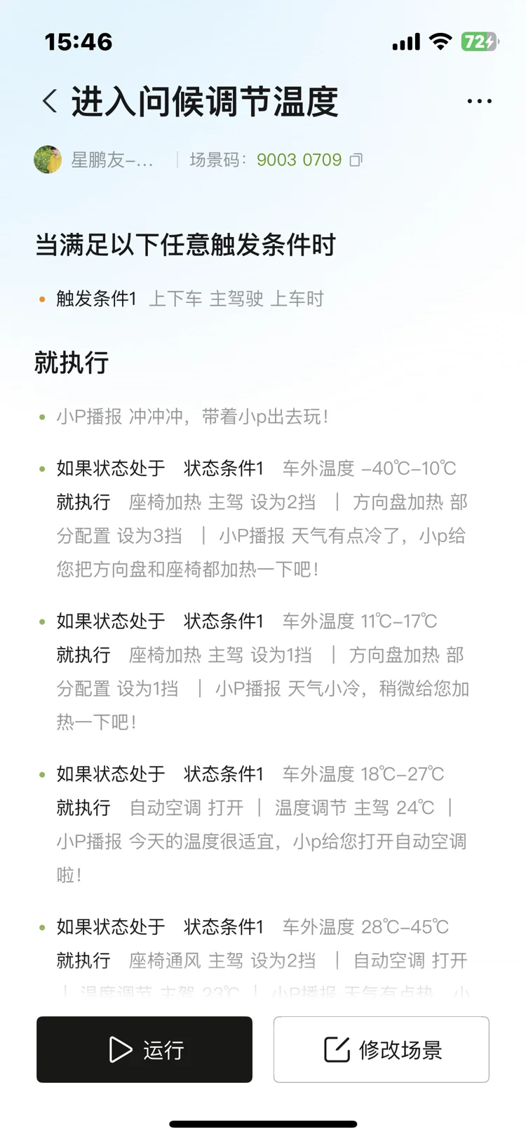 做了一个全场景的智慧场景,上车问候,加在不同温度加热主架和合适的空调温度,场景码图中自拿哦