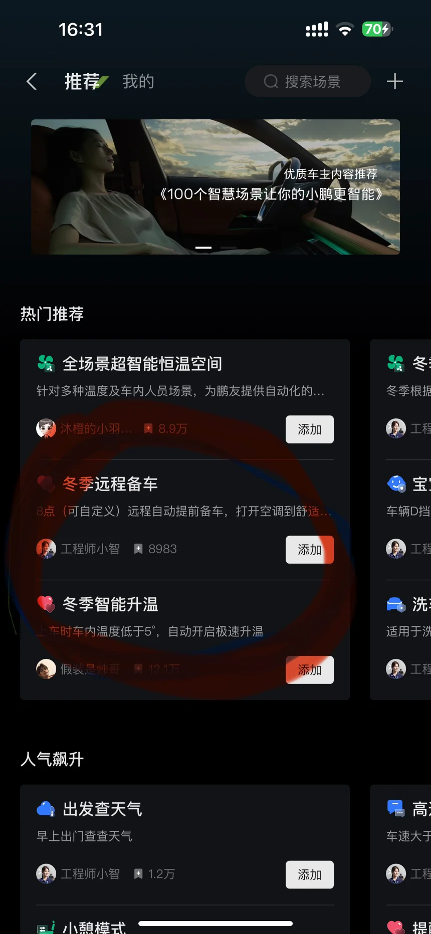 #鹏友们的冬季用车秘籍#@鹏友俱乐部 冬天来啦,分享下我的续航小技巧1. 预热车辆:启动前先预热几分钟,让电池达到最佳工作温度。在app里可以选择哦。2. 使用座椅加热:相比空调,座椅加热更节能,还能快速暖身哦!呼叫小p就可以啦!3. 减少急加速和急刹车:平稳驾驶可以有效延长续航里程。4. 保持胎压正常:低胎压会增加能耗,定期检查并调整胎压。 5. 停车时选择避风处:避免冷风吹拂,减少电池损耗。