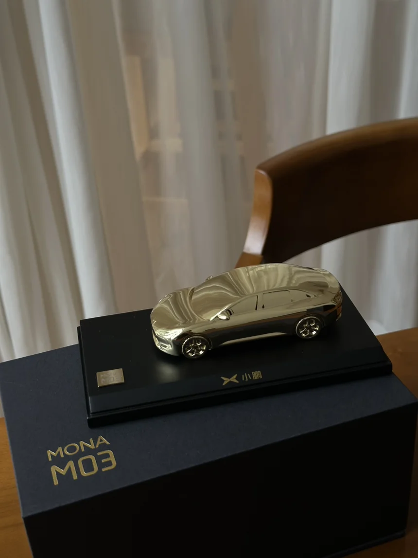 新场景!来自小鹏MONA交付20万辆纪念车模14个月,20万台!🚗🚀 三月份参加小鹏MONA第10万辆整车下线仪式时,大师兄就说过在今年早些时候跟大家分享20万辆整车下线,他做到了! 相识于车 不止于车💓越来越多的车友汇聚 因小鹏MONA结缘,从车友变挚友~ 越来越多的温暖回忆 嘿嘿⁰̷̴͈꒨⁰̷̴͈ .* 🚘纪念车模到手啦🫴金光闪闪定格它的美💫期待下一个十万,到时见~ #小鹏汽车 #小鹏MONA下线20万台刷新纪录 #小鹏MONA用时14个月下线20万台 #汽车模型 #镀金车模 #小鹏MONA