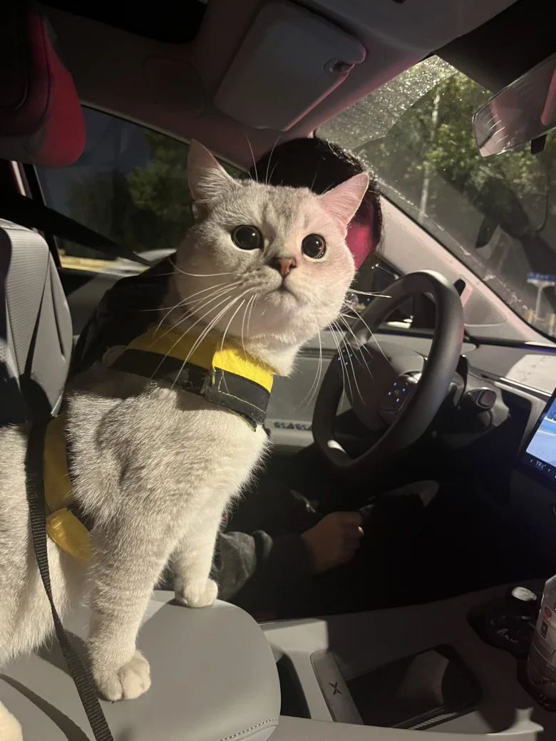 #我的提车作业# 终于提车了!没想到副驾的第三位乘客,是同事家的这只好奇小猫。它在我怀里探着脑袋,琥珀色的眼睛映着崭新的内饰,仿佛在替我验收这份期待已久的喜悦。软乎乎的爪子搭在扶手箱,像个毛茸茸的监工。从此以后,通勤路上多了一份自由,或许还能经常载着这个小家伙一起兜风——当然,得先征得它主人同意~