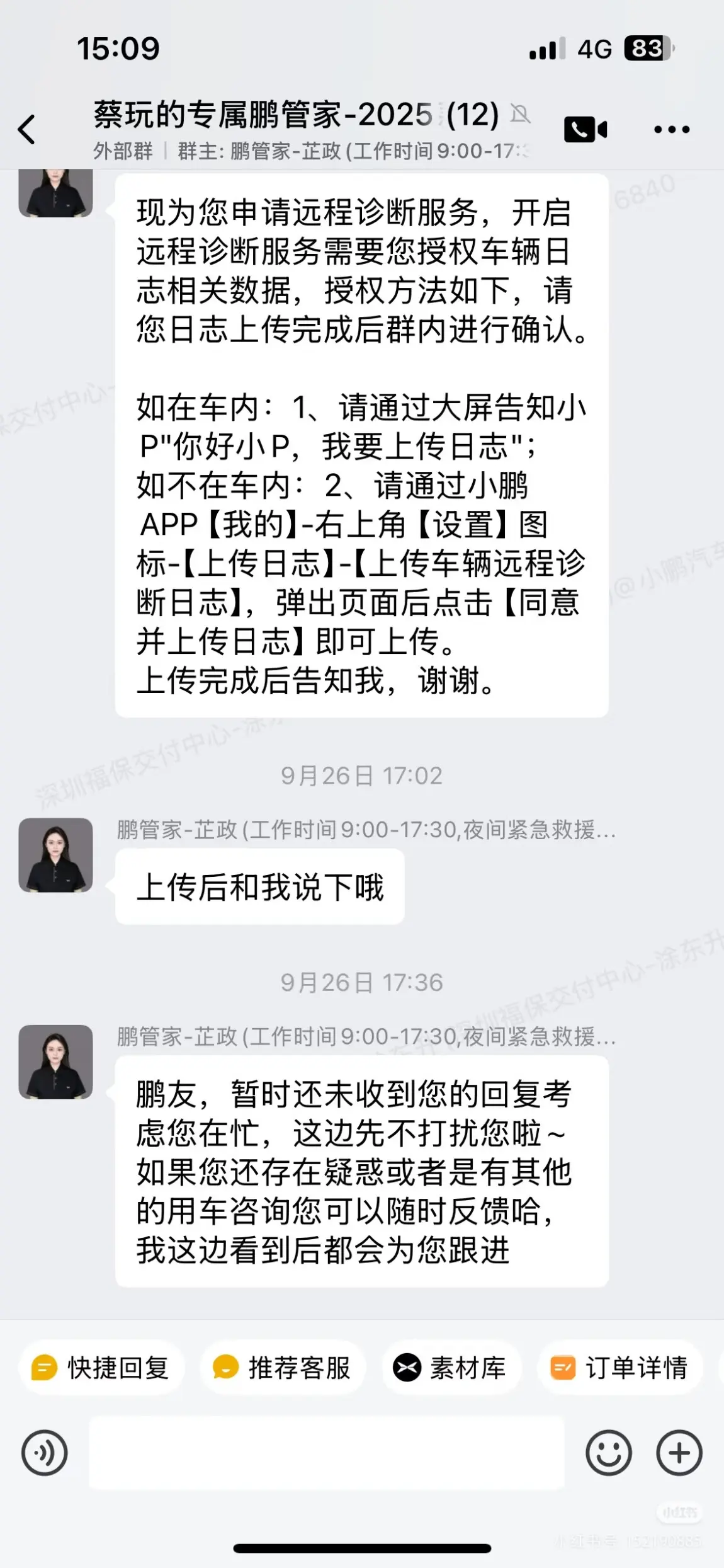 小鹏汽车的远程诊断服务在应对NGP智驾异常降速问题时,展现了其数字化服务的便捷性。用户可通过400客服或者是群管家反馈并上传日志,工程师能远程分析日志,甚至结合行车记录视频进行诊断。最近因为有遭遇 NGP 在路况良好时异常降速情况。微信群联系了小鹏管家,官方虽能通过远程诊断定位部分原因(如高精地图末覆盖),但更深层的算法优化和系统稳定性仍需加强。车主需随时准备接管,这也提醒我们,现阶段智驾仍是辅助。希望小鹏能持续优化,让技术真正服务于安全与安心