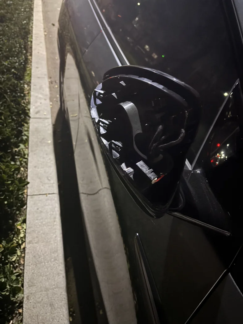 下车一看好家伙,靠马路牙子路极窄还能被蹭?发现很蹊跷,就是外壳没了,周围到处找没找到……