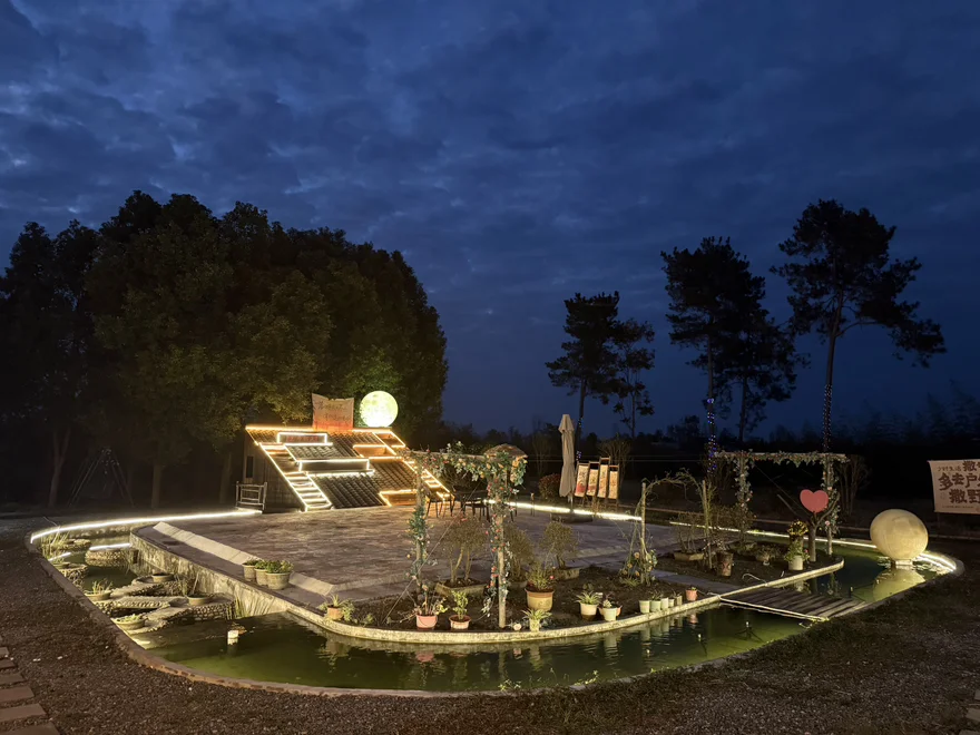 在星光与月色交织的户外空间,我们用可持续的方式拥抱自然。木质展架上陈列着植物基零食,每一款都承载着对地球的温柔守护。带着小狗漫步在草地上,看着它追逐着黄色气球,生活的松弛感就在这一刻悄然蔓延。夜晚的灯光点亮了这片空间,仿佛是城市与自然的温柔约定。这里没有喧嚣,只有微风、星光与身边的陪伴。我们可以在这里野餐、分享美食,或是在月光下静静地发呆,感受这份属于自己的静谧与治愈。