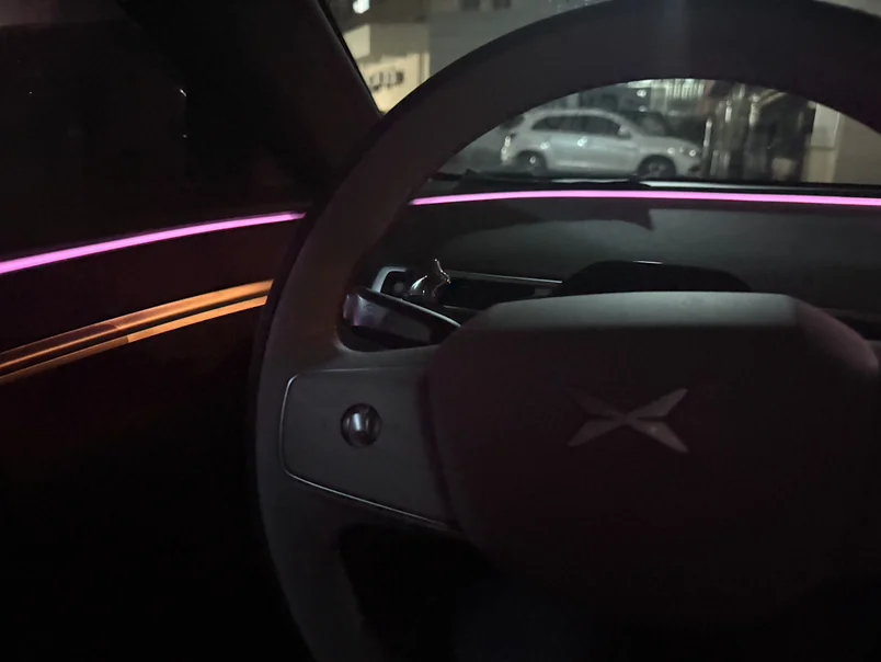 小鹏monam03的刹车蛮不错的 相比于其他几款更好操作舒适感更强 没有其他乱七八糟的按键 只要叫一声泥嚎小p就能解决大部分问题哈哈哈哈哈 外观紫色搭配紫色内饰 我最喜欢的还是这个氛围灯 可以两种颜色循环 回头率也是很高咯 打满分