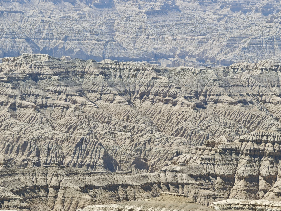 进入札达地区以后,地貌发生了翻天覆地的变化,原本广袤的草原和连绵起伏的山体不见了,取而代之的是各种峡谷沟壑。原来,在亿万年前,非洲板块大陆和亚洲板块大陆碰撞之前,这里曾经也是一片海洋,而那些沟壑就是被海水冲刷了亿万年而留下的痕迹。