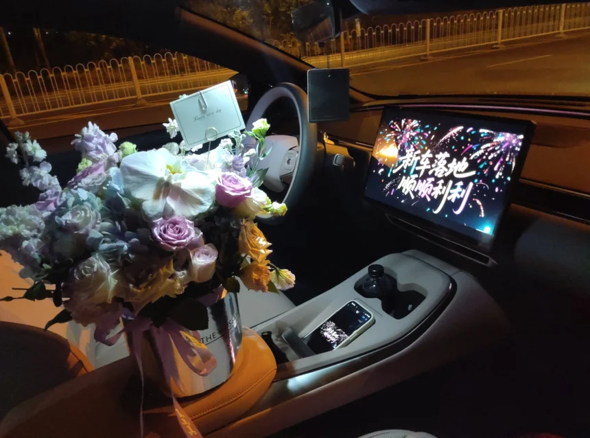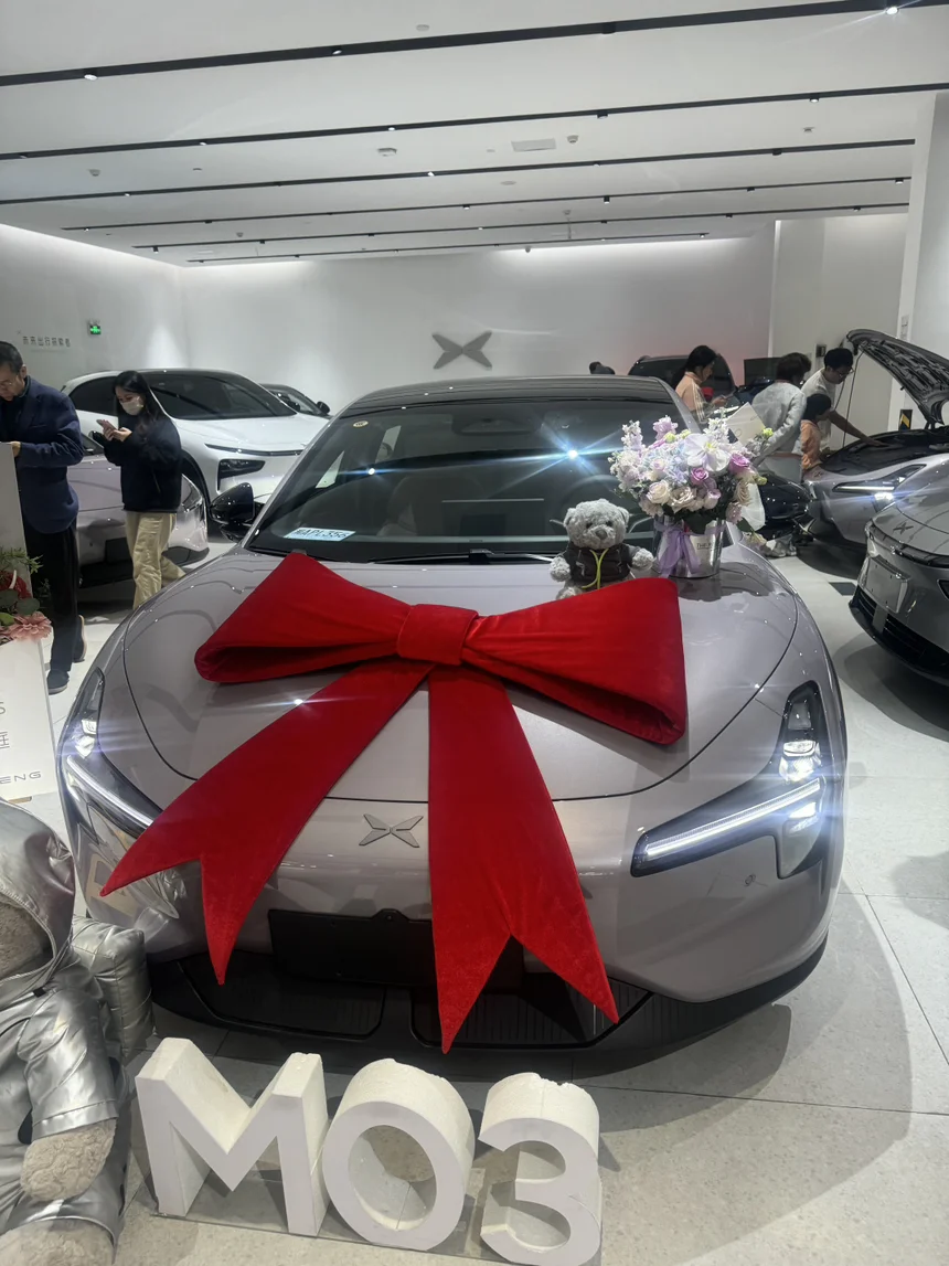 #小鹏汽车#、#买小鹏前VS买小鹏后# #M03首批到店# #小鹏提车提车当天,4S店的仪式感满满。我的MONA03早已干干净净地停在那儿,还系上了喜庆的红丝带。交付专员超负责,从锁单开始就一直保持沟通,有任何消息都第一时间通知。验车、办手续一气呵成,销售细致讲解了车辆功能。我里里外外检查得可仔细了——车身漆面光滑,没有一点瑕疵;车身缝隙均匀;车窗、车灯、内饰也都完美无缺。车机激活也很简单,在专员指导下没一会儿就搞定了。最后还有超有仪式感的提车环节,鲜花、拍照,真的幸福感爆棚。也是有小鹏友的人啦