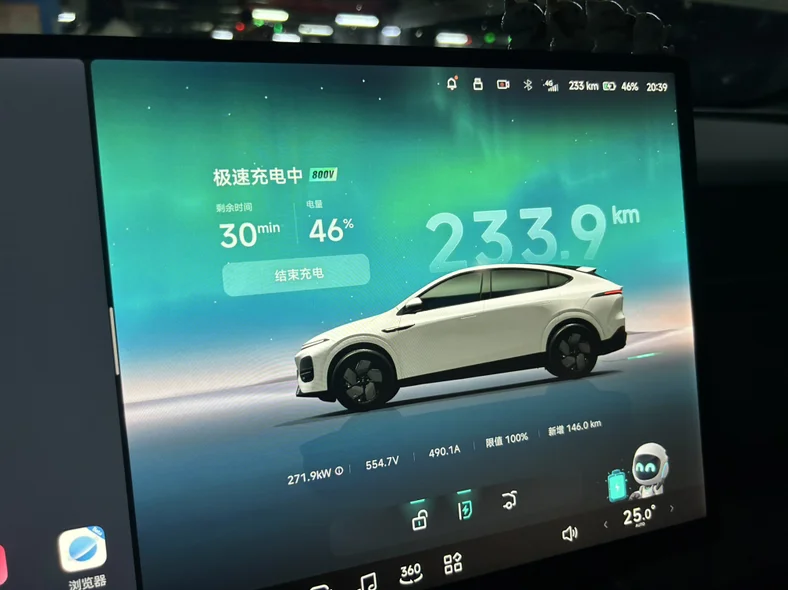 充电方面,5C效率惊人,之前的旧车最高也就40Kw的水平,新G6随便的充电桩都可以100Kw以上,在自营桩随便就上200Kw的水平,再也不用等充电等到睡着了😴。