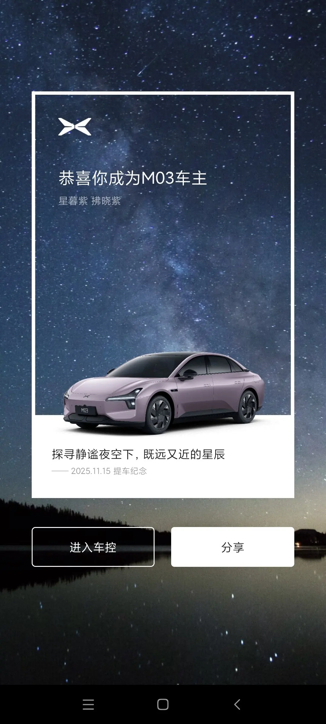 #我的提车作业# 2025年六月初在商城里看到了新款的mo3,当时听了销售讲解,聊了置换政策,蠢蠢欲动,想换mo3,紫色真好看。后来最近,11.7下午突发奇想想去试驾下,感觉真不错,换车换车,11.10晚上付了定金,锁单,11.11提交资料,11.13车到了,约定11.15下午提车,下午两点半到达,办手续,办保险,上牌,五十选一,选到了自己喜欢的车牌,不错不错。下午提车的时候,还拍了好多照片和视频,记录此时此刻,挺好的,喜欢紫内紫外的颜色。穿了紫色衣服去提的车啦。