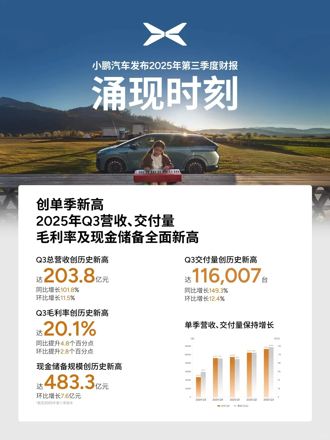 小鹏汽车2025年第三季度财报,多项数据创新高