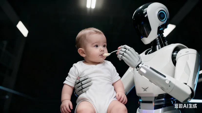 清晨的阳光刚漫进客厅,我正对着哭闹的宝宝手足无措,一个熟悉的身影轻轻走来——小鹏Iron伸出灵活的机械臂,稳稳抱起扑腾着小手的婴儿,另一只手臂精准递来温好的辅食碗和软头勺。“已检测宝宝饥饿度85%,辅食温度38℃,适合喂食。”温和的电子音落下,它手腕微转,一勺细腻的米糊缓缓送到宝宝嘴边,动作比我还要轻柔。