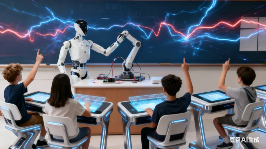 #小鹏Iron在身边# 校园新晋顶流!小鹏Iron凭实力圈粉全校娃✨科学课全息投影演实验,体育课带娃跳绳做游戏,课下被围满听故事、分享小秘密~ 机械臂超灵活,还会温柔鼓励,连最内向的娃都主动贴贴!这智能助教,教学+陪伴双在线,谁懂啊!