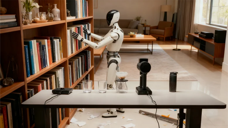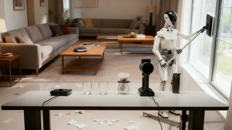 卧室里,Iron正忙着整理床铺。它的机械臂末端换上了防静电布料,抚平床单褶皱时动作轻柔得像熨烫机,连枕头的摆放角度都严格遵循着“与床头平齐”的习惯。最让人惊喜的是它的“智能分类”功能:扫到床底的头发丝,会自动吸入专用收集盒;捡到我昨晚随手扔在床边的围巾,便展开小型烘干模块去除潮气,再叠得方方正正放在床头柜上。