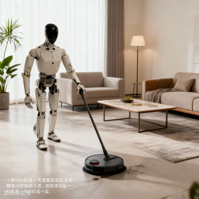 在温馨的居家场景中,小鹏Iron机器人成了我得力的助手。瞧,它正灵活地挥动着机械臂,手持清洁工具,仔细地清扫房间的每一个角落。地面上的灰尘、杂物都被它一一清理,让房间始终保持整洁干净,为我营造舒适的生活环境。(该图片由AI生成)#小鹏Iron在身边#