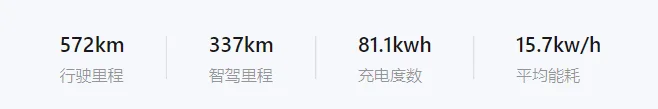 毕竟这是一辆用车成本极低的纯电车型,智驾标签遮掩了优秀的三电系统!虽然标榜580cltc的实验室测试续航,但是实际体验下455wltp的工况也足够能打!再搭配高速的智驾模式,用以自驾游、出差会谈,真的挺有一番作为!全程高速的情况下,572公里的情况下,仅有15.7的电耗,足以规避了长途出游的电量焦虑!
