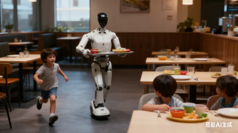 餐桌照料:IRON平稳端放餐具,智能避开孩子,展现安全贴心的守护能力。