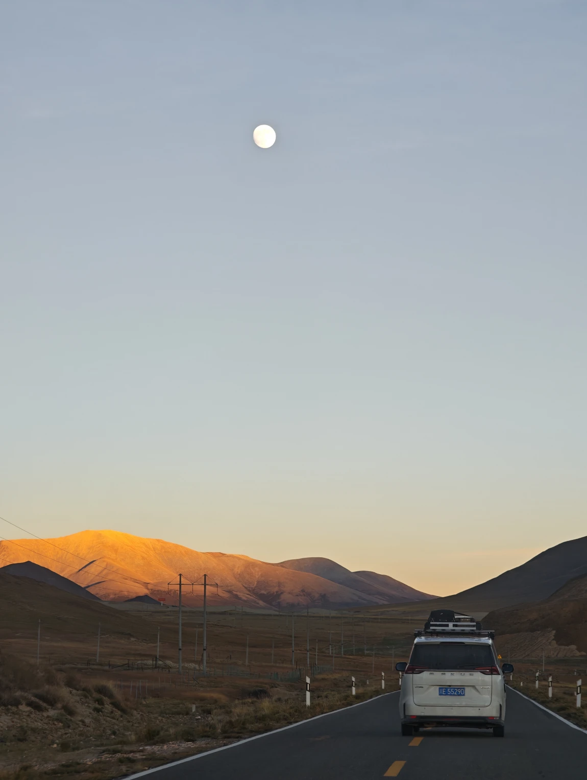 西藏的日落,地平线的色彩很好看