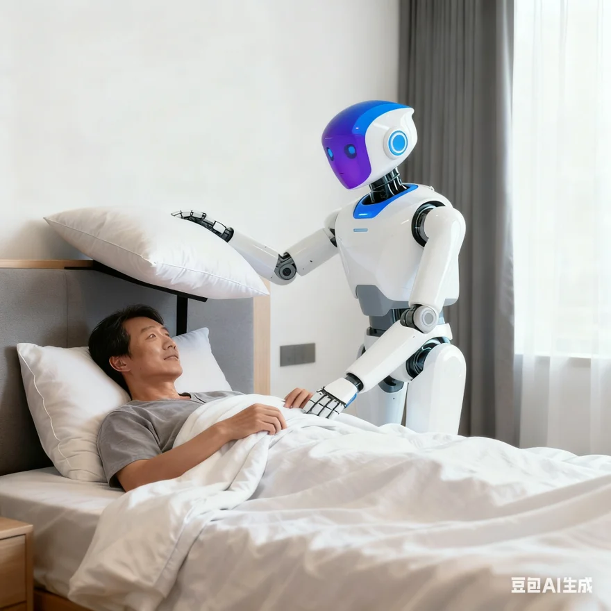 卧室的床头旁,小鹏Iron正半蹲在床边,用搭载了医用级传感器的指尖轻轻触碰老人的手腕,同步将心率、血压数据上传至家庭健康云平台,屏幕上随即显示“指标正常,今日建议步行15分钟”的提示。随后它取来老人的护膝与轻便运动鞋,还从客厅的智能药箱中准确拿取了降压药,配好温水递至老人手中。这个场景里,Iron弥补了家庭照料中“实时监测+及时响应”的短板,尤其针对独居老人群体,既能完成基础健康管理,又能通过语音交互陪老人闲聊解闷,让居家养老的安全性与陪伴感同步提升。