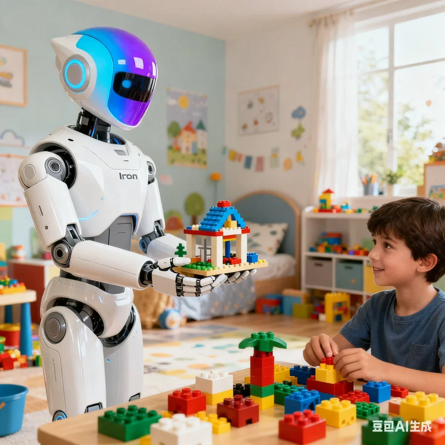 儿童房的书桌前,小鹏Iron正用可拆卸的投影模块,在墙面投射出动态的地理知识动画——当孩子问到“为什么极光只出现在南北极”时,它不仅用3D模型演示了太阳风与地球磁场的作用原理,还同步调出了极地科考的趣味视频。待孩子完成作业后,Iron切换至“运动模式”,陪着孩子在客厅玩起了“反应力接球游戏”,机械臂的速度会根据孩子的动作节奏灵活调整,避免孩子受伤。这个场景中,Iron既是“趣味教师”,又是“安全玩伴”,通过多模态交互让学习与娱乐自然融合,降低了家长的陪伴压力。